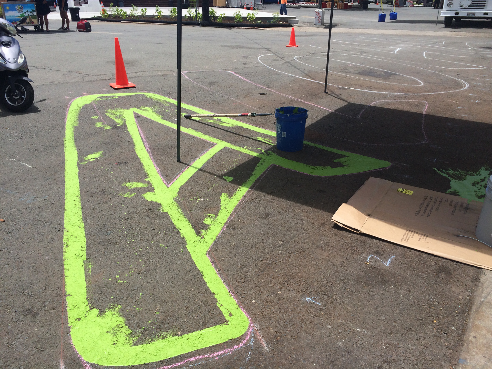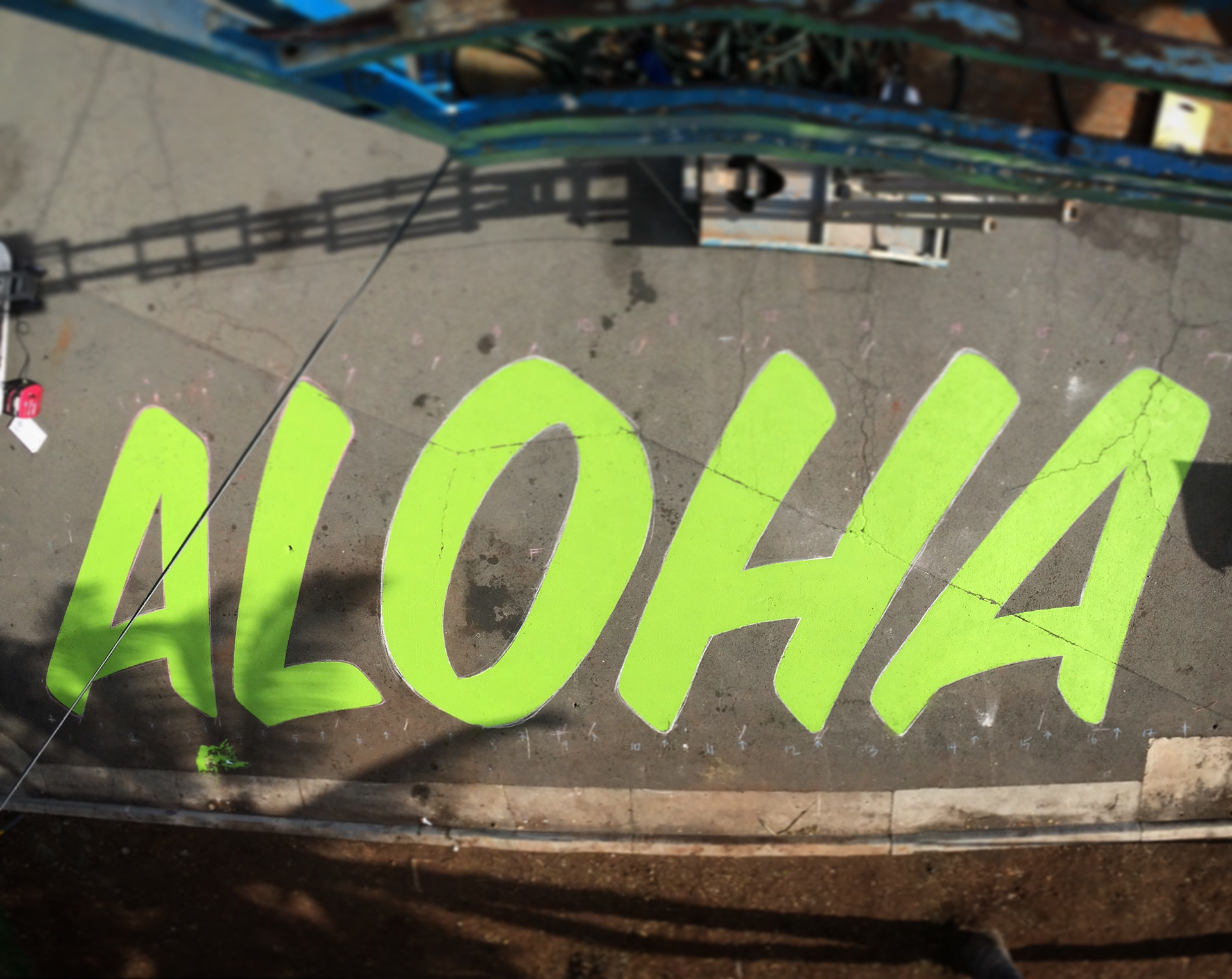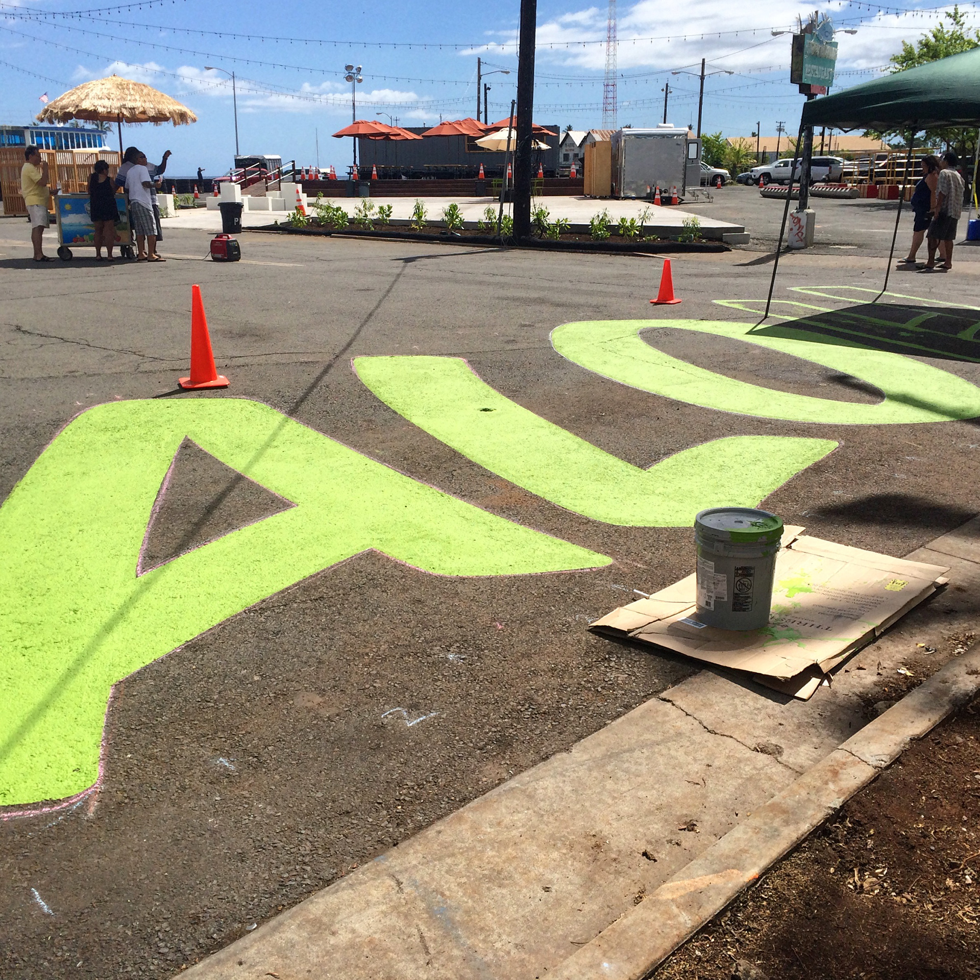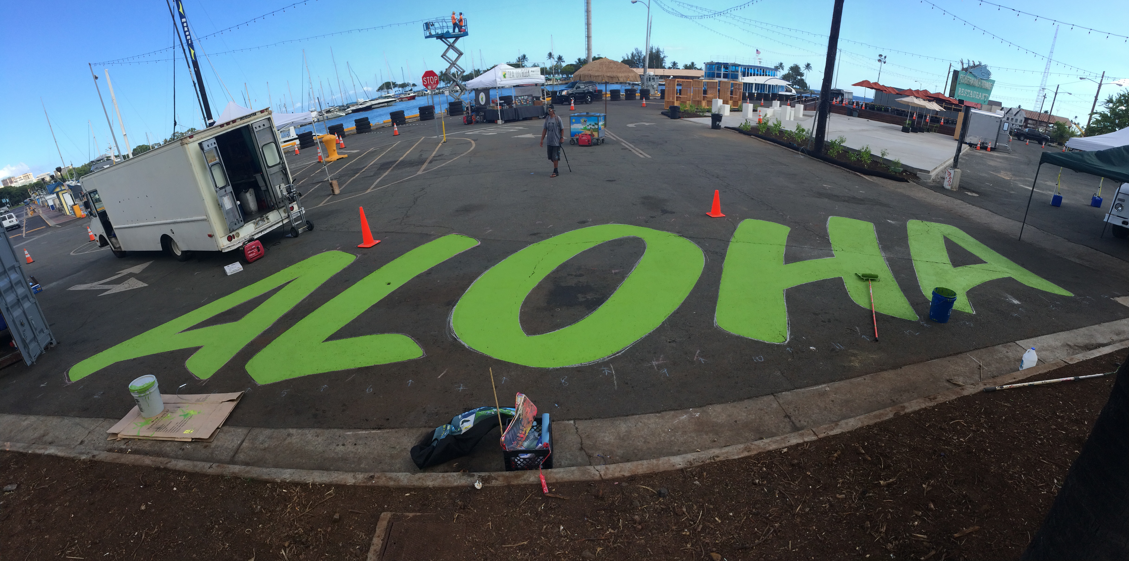 50 foot wide "ALOHA" painted on the ground for Makers and Tasters in Honolulu