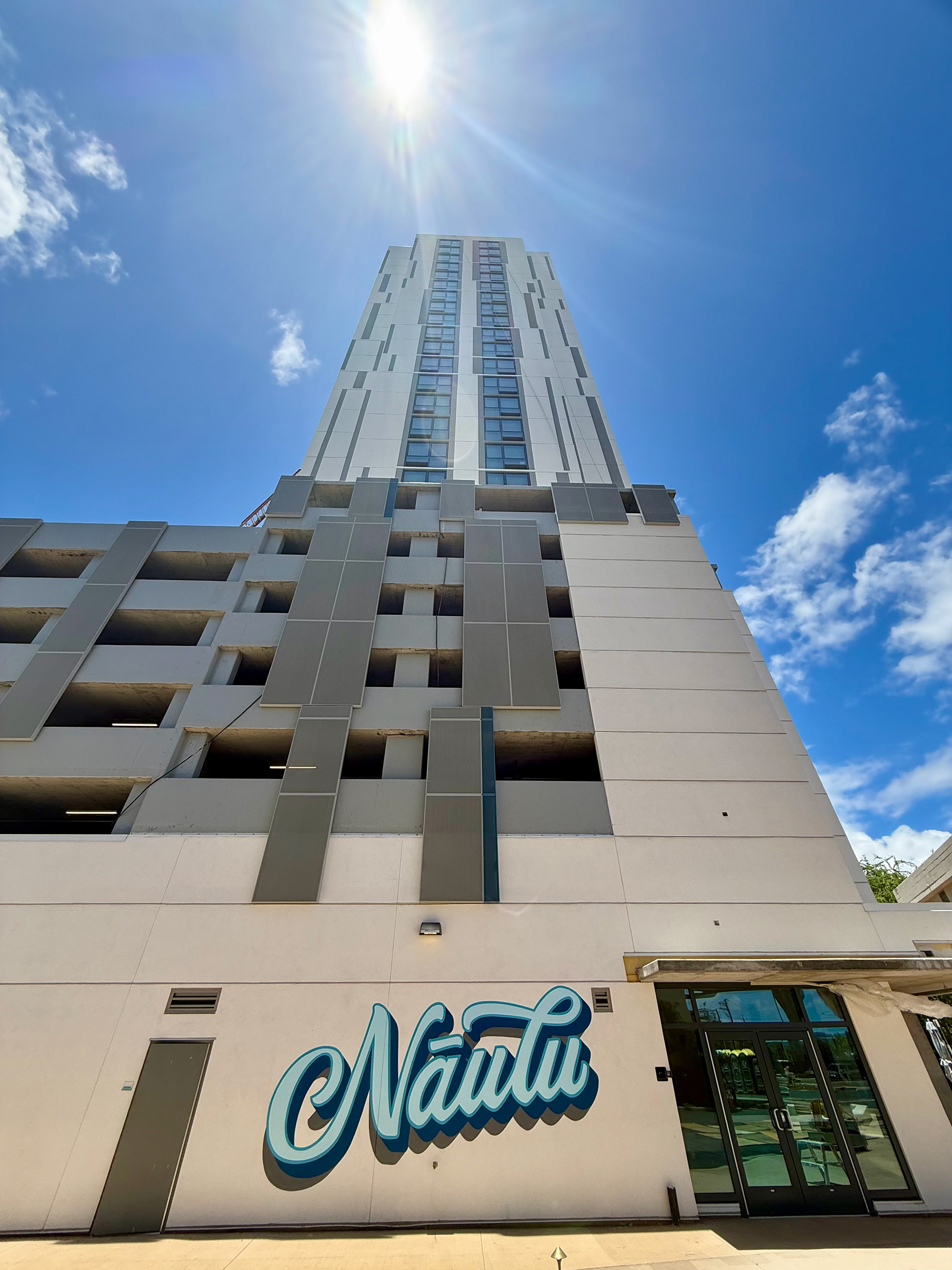 Monument sign for new affordable housing tower in Halawa, Hawaii.